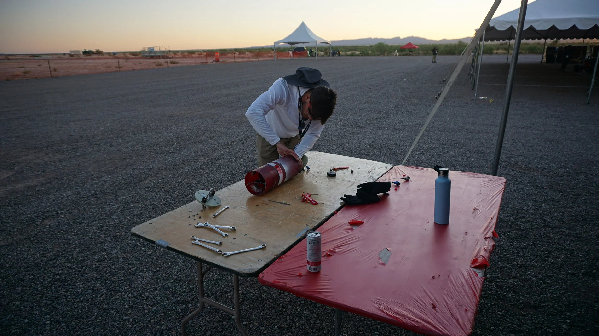 The 2023-2024 Penguin Rocketry Team launched their Artic Arrow at the 2024 Spaceport America Cup, marking the team’s third consecutive year competing in the global competition that is hosted in New Mexico each June. Building off of last year’s success, the 2023-2024 team is aiming to reach the 10,000 ft mark and competed in the 10K COTS category for the competition. The team is pulling together design aspects from both the original Peng-One and Peng-One.2. The Arctic Arrow is a sleek white rocket, accented with red stripes and it stands just above 12 feet making it the tallest rocket built by the team to date.